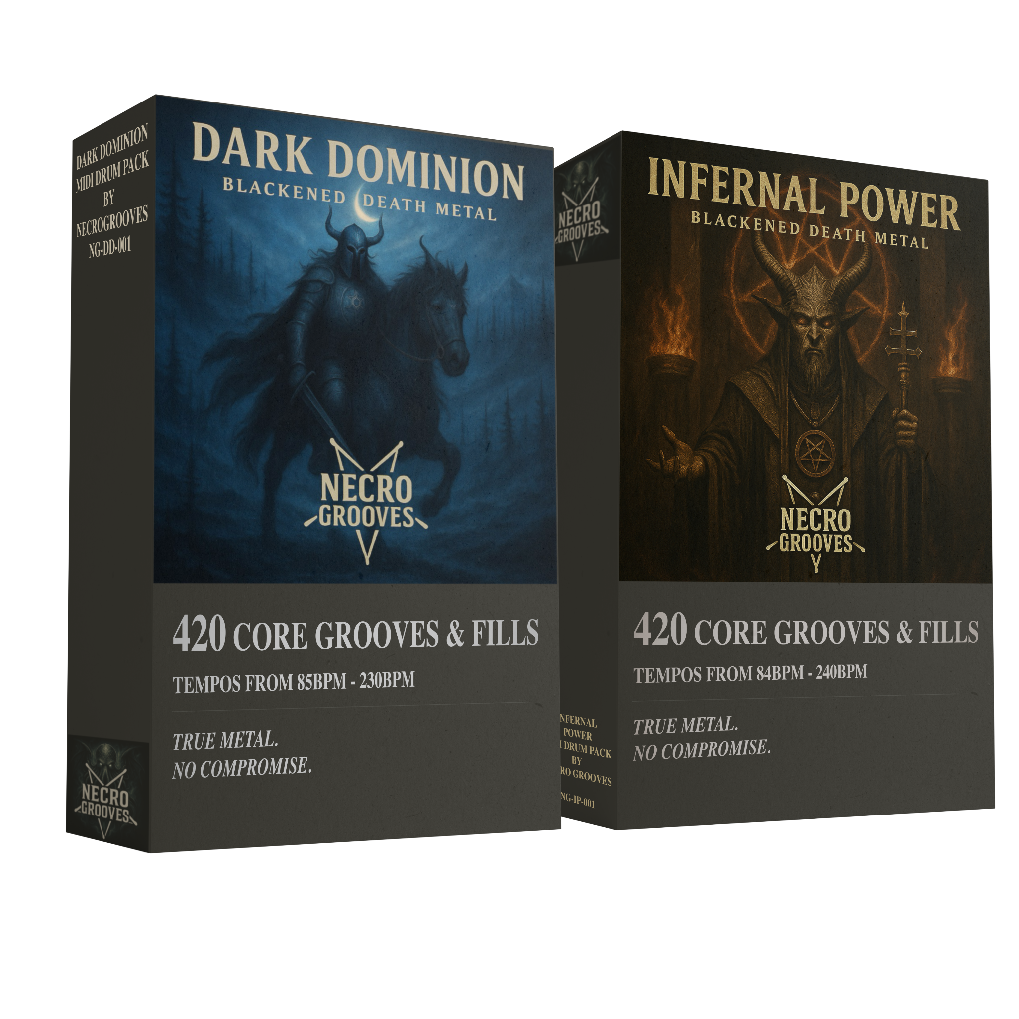 Abyssmal Architect is a crushing collection of 420 handcrafted MIDI drum grooves and fills, forged for Deathcore, Tech-Death, and extreme metal genres with a dystopian, sci-fi horror edge. Inside, you'll find a devastating mix of blast beats, syncopated breakdowns, and machine-precision grooves— all loop-ready and dripping with heaviness.